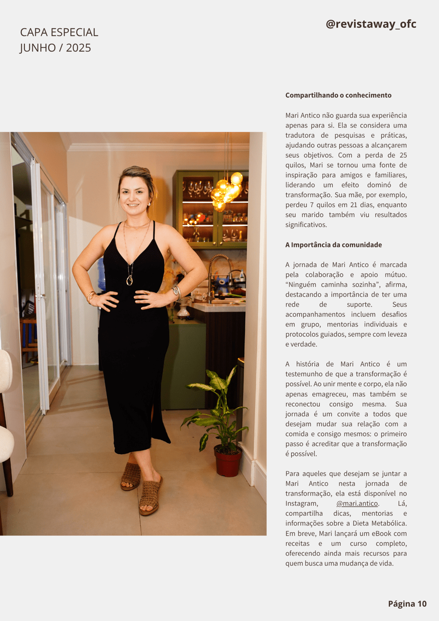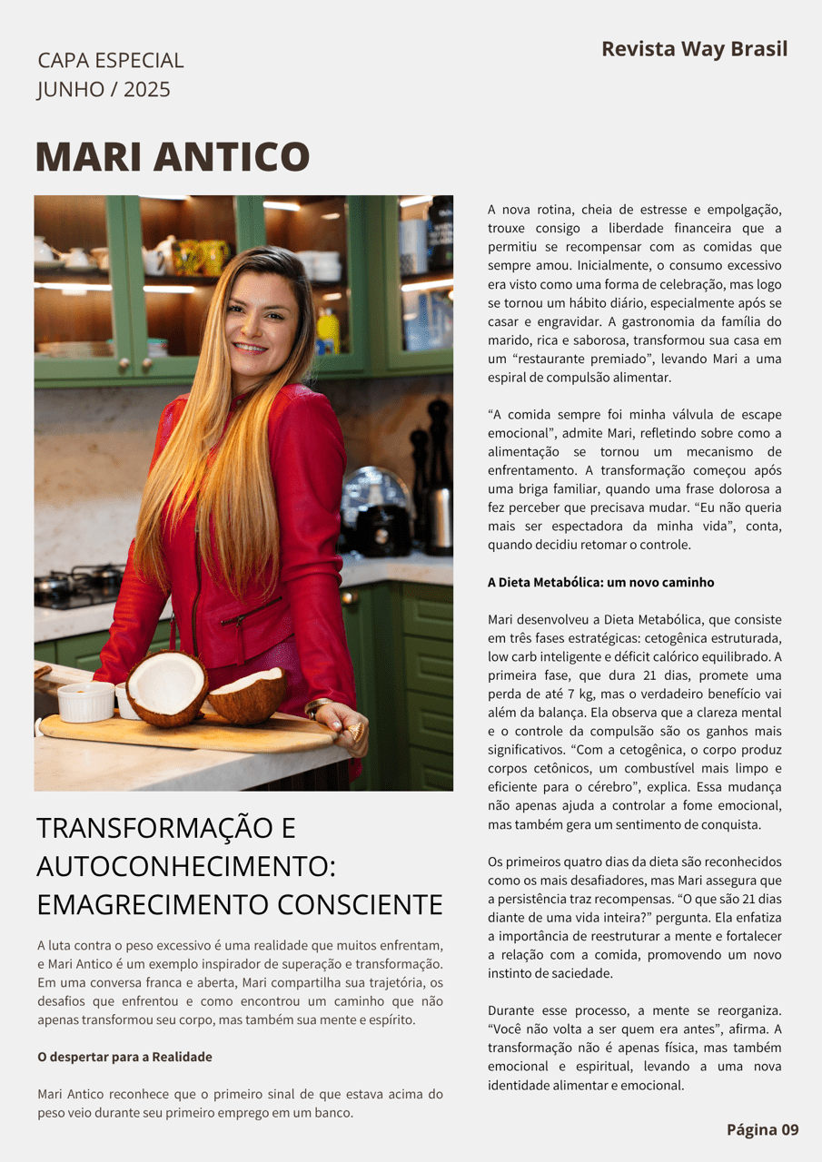 Tags: emagrecimento, transformação, auto conhecimento, corpo, reestruturação neural, Mari Antico, Revista Way Brasil